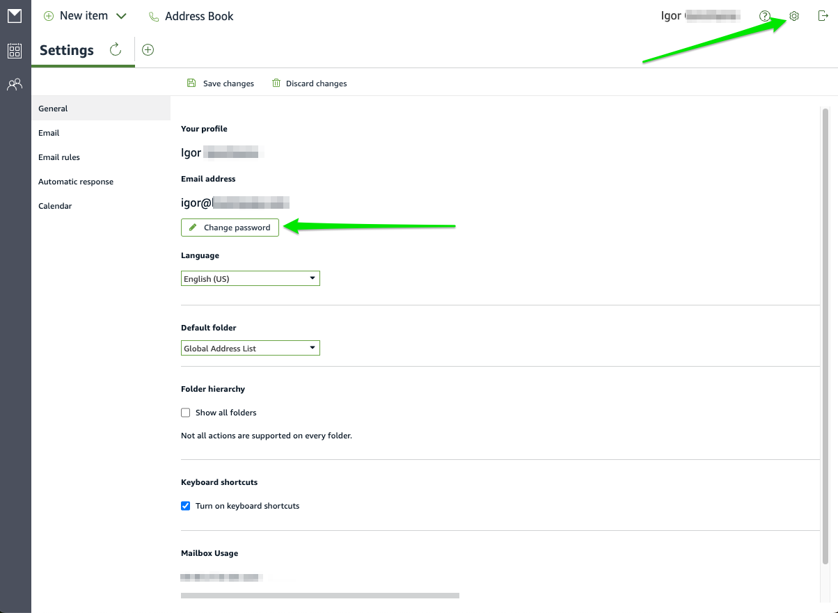 - Login to https://hebusa.awsapps.com/mail/ or https://hostmysip.awsapps.com/mail/