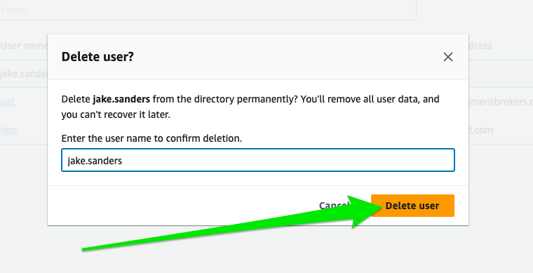 - Once the account is disabled, an account can finally be deleted. This can be done by choosing the account with a checkmark on the left side of the screen. Then, a button stating Delete needs to be pressed, indicated by red arrows in Figure 1.4