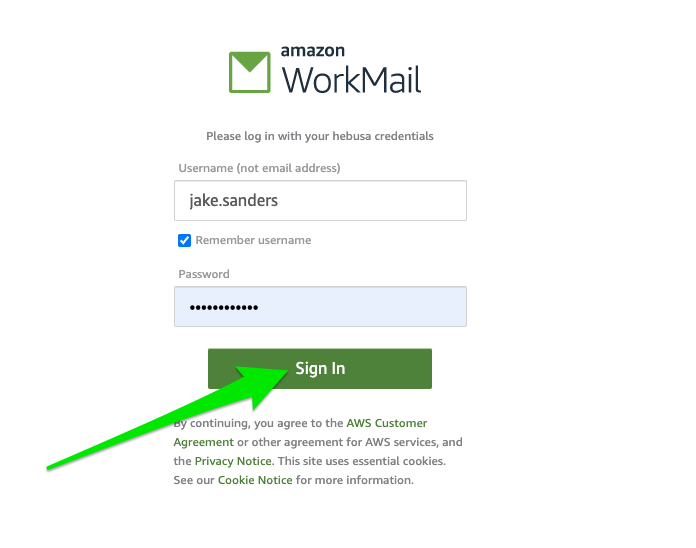 - Log into the Amazon WorkMail Client (link)