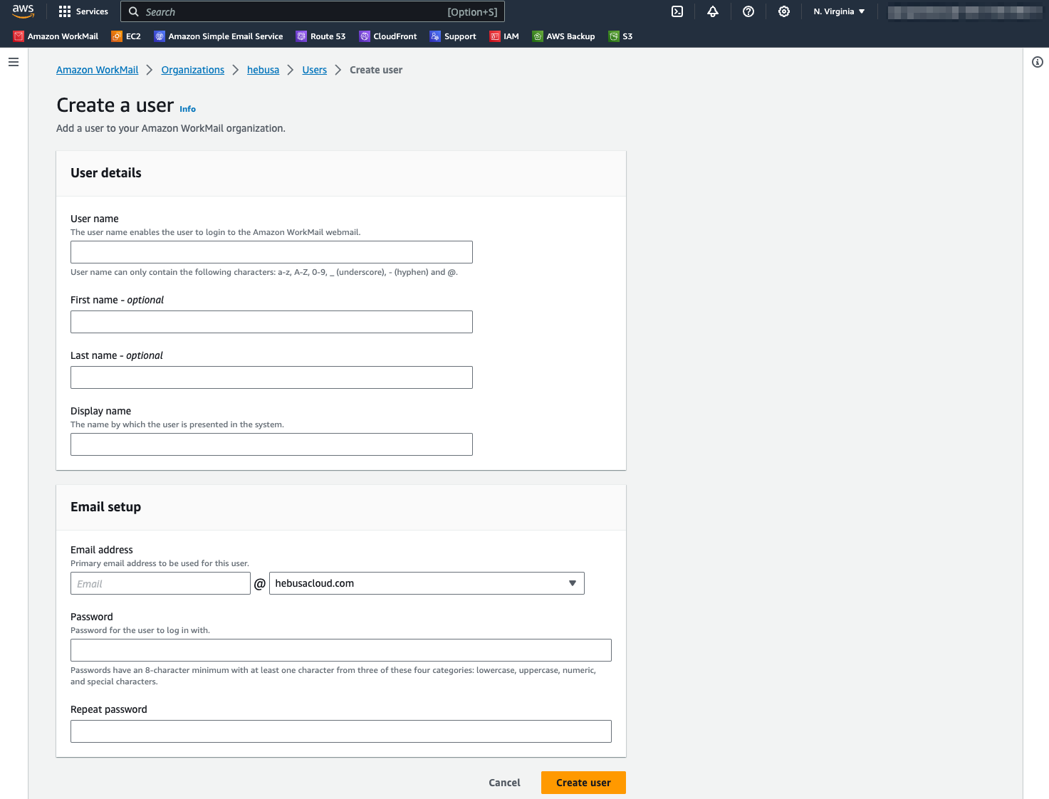 - Enter your desirable username, first name, and password that are going to be associated with your personal mailbox